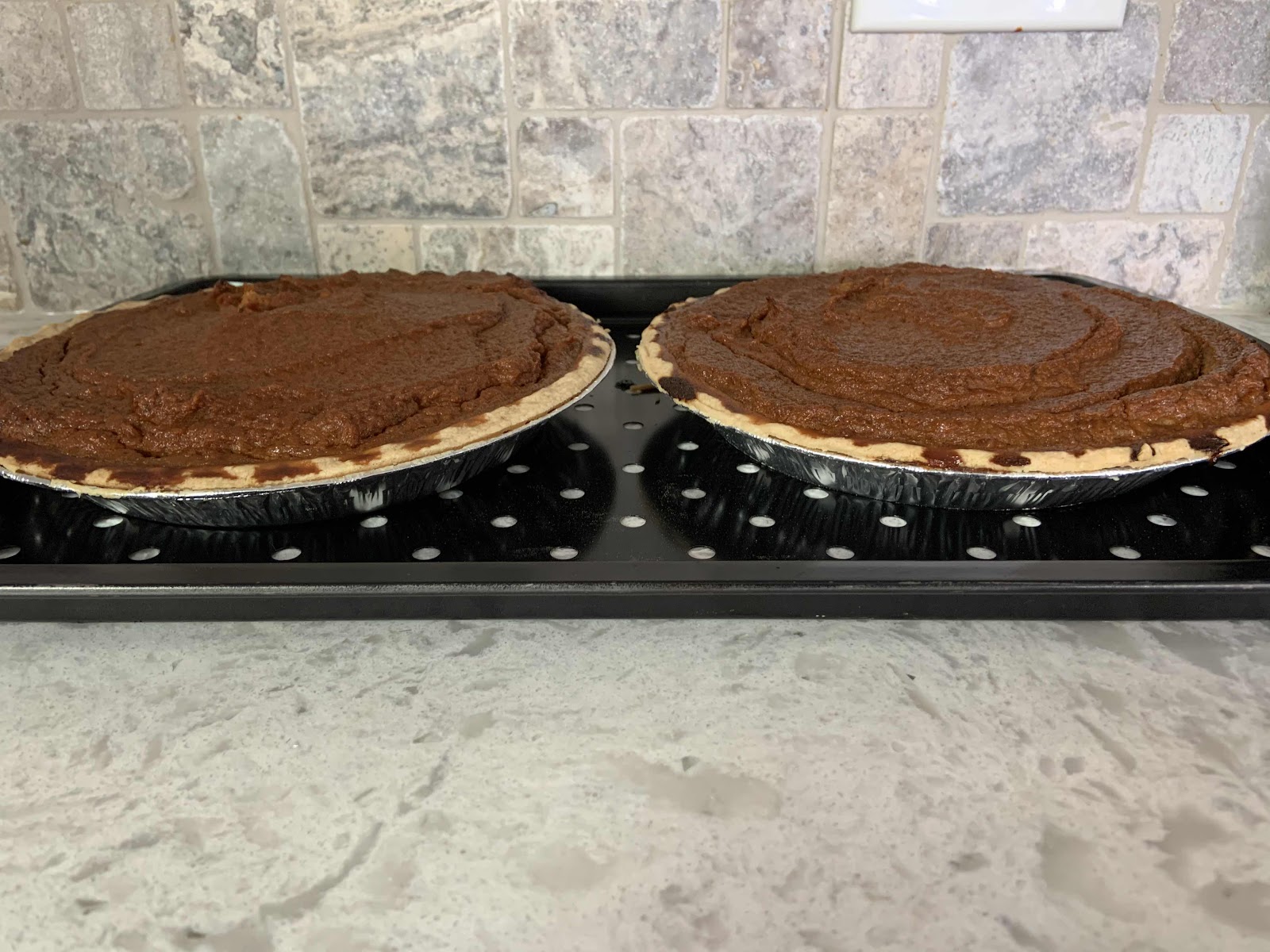 Pour into two unbaked pie crusts and bake at 400 for 20 min then at 350 for 45 minutes more . Do keep checking on your pies as ovens tend to differ in their performance. I’ve had an oven before that I swear was hotter than the temperature I set it at. I’ve also had an oven that seemed way cooler on the exact same temperature setting!